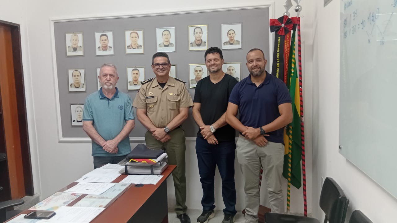 A reunião ocorreu na sede do CPM, onde a equipe do Farol Digital foi recebida pelo Diretor seu diretor, Tenente-Coronel Edmilson Castro, e pelo Coordenador do Ensino Técnico, Márcio Valente.